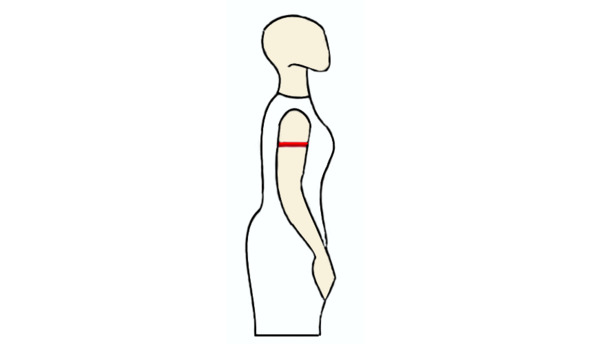 Измеряется горизонтально касательно подмышечных впадин по свободно опущенной руке.