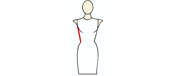 Измеряется от линии талии до верхнего края линейки, приложенной к углам подмышечных впадин.