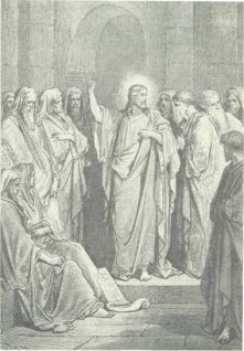 Христос нарушил этот обычай, так как, не ожидая вызова начальника, который, надо думать, и не стал бы его вызывать, подошел к скалкам и, взяв книгу пророка Исайи, начал читать ее с первого же попавшегося ему на глаза места. Надо ли говорить, что собравшиеся были шокированы поведением молодого человека, не дождавшегося вызова начальника и ставшего читать книгу не с начала, а с первого подвернувшегося места.