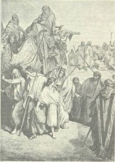 Увидев наконец в свете утра приближавшегося вместе со своими многочисленными людьми Исава, Иаков тотчас пошел ему навстречу. С ним шли дети Лии и Рахили, их было у него одиннадцать человек. Самым маленьким был Иосиф, и Рахиль шла с ним позади всех, так как малыш постоянно отставал.
