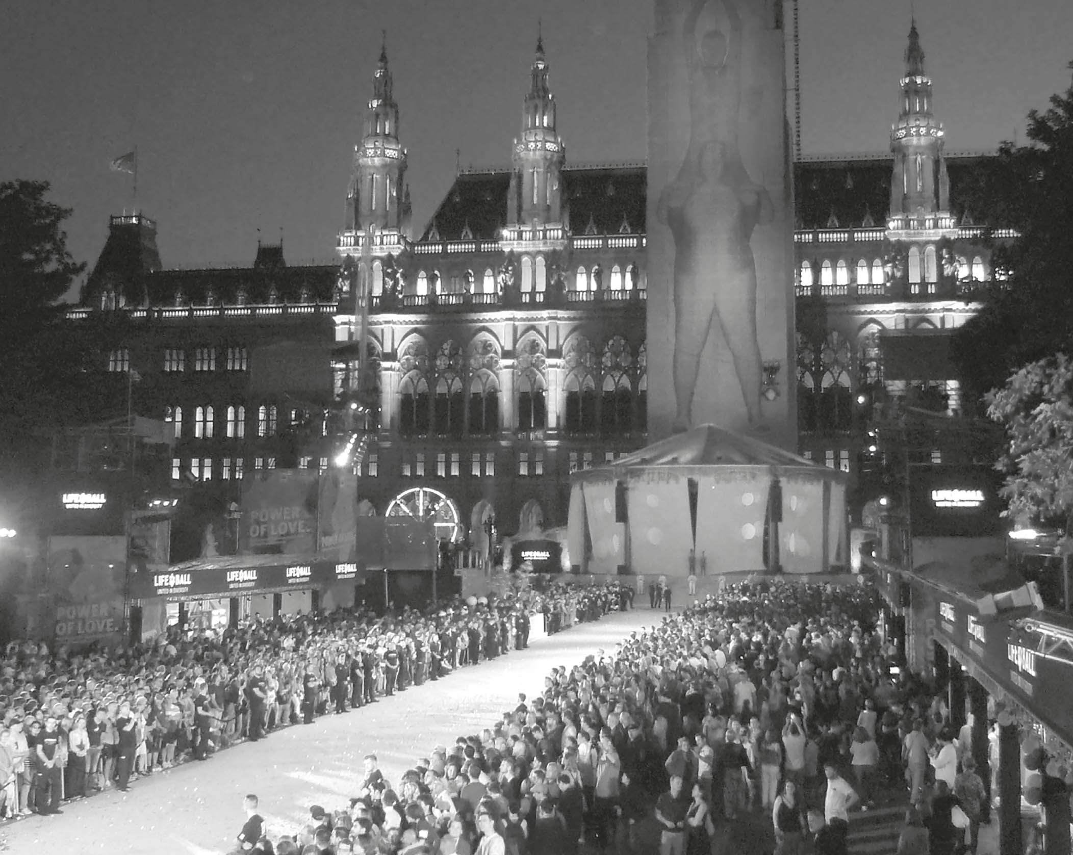 Das Ende des Life Balls hat es einmal mehr deutlich gemacht: Die Eventisierung des öffentlichen Raumes ist längst auch in Wien zur Selbstverständlichkeit geworden, zu einem bedeutsamen kulturellen und wohl auch wirtschaftlichen Faktor. Läuft ein derart renommierter Fixstarter im jährlichen urbanen Veranstaltungskalender aus, wie der seit mehr als einem Vierteljahrhundert bestehende Megaevent zugunsten der Aids-Hilfe, wird dies von vielen als unwiederbringlicher Verlust erlebt. Zumal die TV-Ausstrahlung dieses außergewöhnlichen Ereignisses, das sich von Beginn an als bunt, exaltiert und vor allem auch politisch verstand, weit über die österreichische Hauptstadt hinausreichte und man damit letztlich weltweite Aufmerksamkeit genoss. Eine zweifellos beachtenswerte Leistung in unserer zunehmend kompetitiven und markenorientierten Zeit. Wien war mit dem Life Ball auf der internationalen Landkarte präsent, er passte perfekt zum Image der Kulturmetropole an der Donau und veranschaulichte so ganz nebenbei, wie sehr sich die Stadt und das Lebensgefühl in ihr in den letzten Jahrzehnten verändert hatten. Alt und neu in perfekter Symbiose.