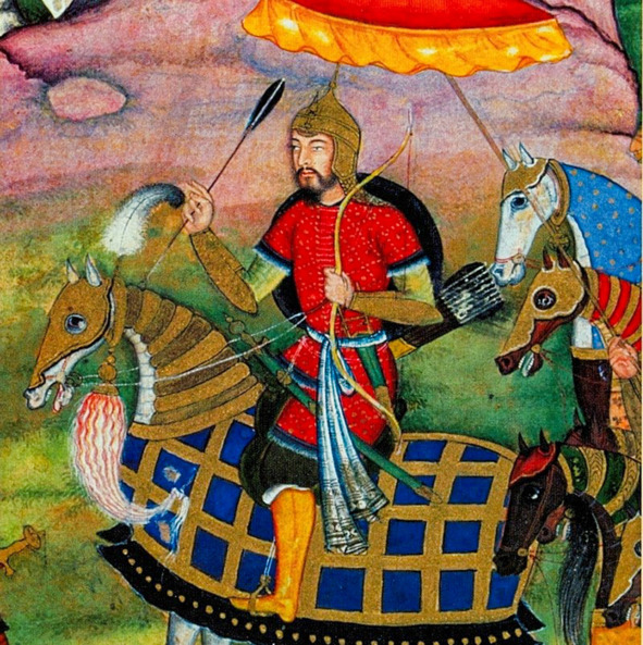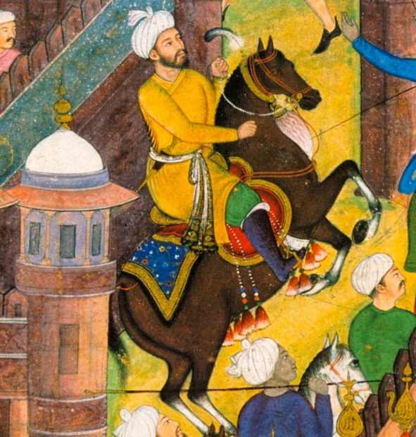 Хумаюн, деталь миниатюры «Бабурнаме» (1590-е). ГМВ, Москва. Общественное достояние. Источник заимствования – ресурсы мировой Сети