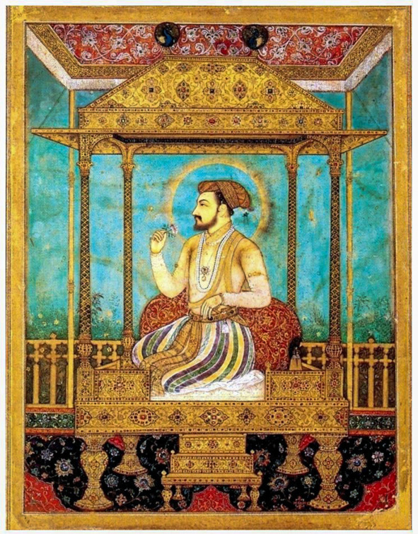 Джахан-Шах на Павлиньем троне (около 1635 года). Миниатюра. Могольская школа. Музей Гарвардского Университета, Кембридж. Общественное достояние. Источник заимствования – ресурсы мировой Сети