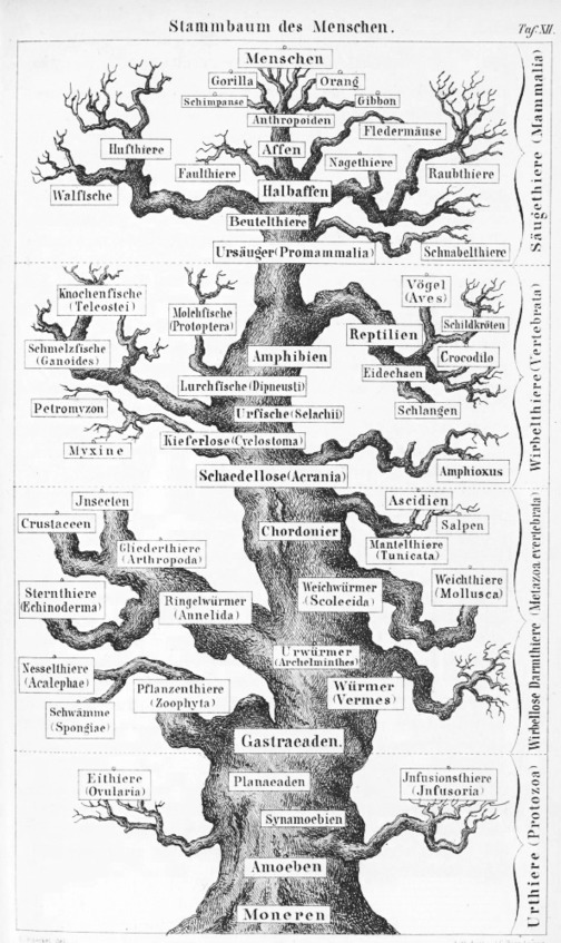 Биологи рисуют генеалогические древа развития растительных и животных видов от простейших одноклеточных до высших млекопитающих.