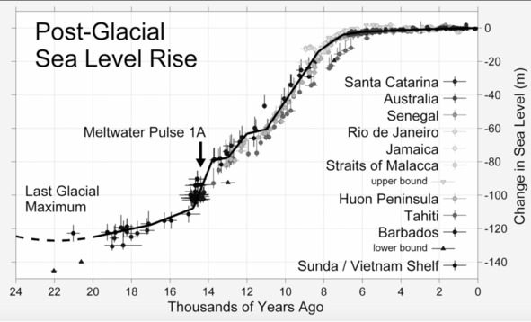Холодные (ледниковья) и теплые (межледниковья) периоды с падениями и подъемами уровней океанов, морей, озер и рек в Ойкумене подвержены, как и во всем мире, ритмическим изменениям. В Северном полушарии выявлены т.н. «циклы Дансгора-Эшгера», запускаемые «событиями Дансгора»; последние обозначаются через D01, D02 и т. д. и привязываются к пиковым похолоданиям: каждые приблизительно 1,5—2,0 тл холод сменяет тепло, причем холодная фаза занимает около 600 лет. При этом амплитуда колебаний температуры может составлять до 60—70% от соответствующих величин для «полноценных» ледниковья (оледенения, гляциала) и межледниковья (интергляциала), а уровень Мирового океана (УМО) может подниматься или опускаться со скоростью 15—20 м за 1000 лет. (Все числовые данные, конечно, приблизительны). Циклы Дансгора-Эшгера сопровождаются поступлением в океан айсбергов Восточной Гренландии [В: Осциляции Дансгора-Эшгера].