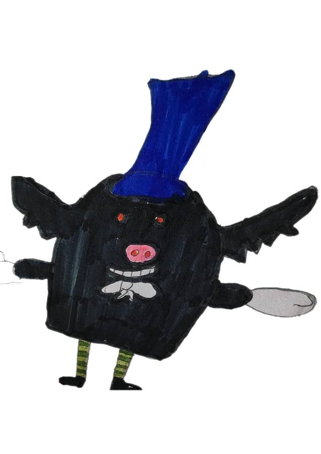 Пришла она в поле, откуда был виден весь её город. Только Маруся разложила свои разноцветные краски и начала рисовать, как вдруг в небе появился страшный, уважаемый в своём мире, монстр. На нём был тёмно-синий цилиндр и белая бабочка. На руках у него были одеты белоснежные перчатки, которыми он держал квадратное ведро.