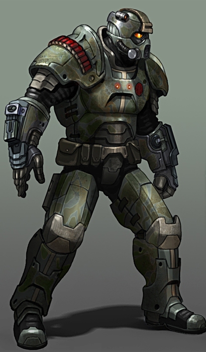 Появившийся силуэт сначала заставил меня схватиться за рукоять Сафирота, но, не увидев у появившегося бойца оружия, я немного расслабился. Да, именно бойца, хоть это и был комендант форта. Но наличие на нем пехотной брони с закрытым шлемом, выправка, да и то как он держался показывали в нем опытного бойца, который прошел через множество боев. Даже войдя в холл, в котором, я уверен, он бывает по несколько раз в день, он сразу легким движением головы охватил полностью помещение, убедившись, что опасности нет.