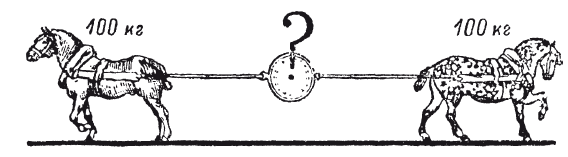 Две лошади растягивают пружинный безмен[11] с силой 1000 Н каждая. Что показывает стрелка безмена?