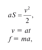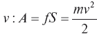 Умножая силу f на путь S, получаем работу А, которая в то же время равна и полупроизведению массы m на квадрат скорости