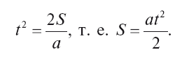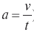 Скорость v равнопеременного движения, делённая на время t, равна ускорению а (формула