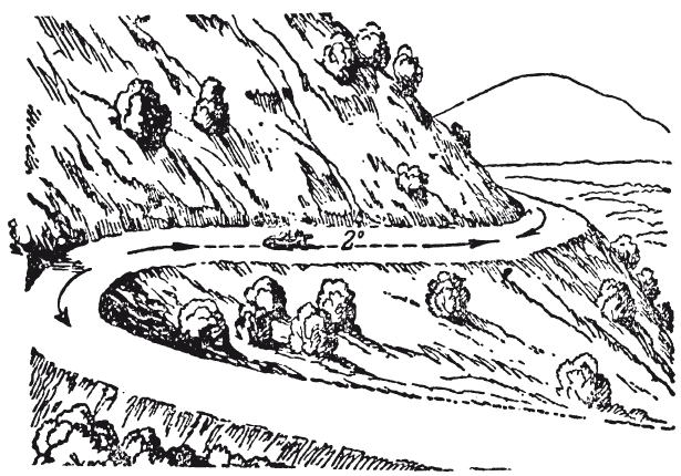 Сходной иллюзией зрения объясняются и рассказы путешественников о реках, вода которых течёт вверх по уклону. Привожу выписку об этом из книги немецкого физиолога проф. Бернштейна «Внешние чувства»: «Во многих случаях мы склонны ошибаться при суждении о том, горизонтально ли данное направление, наклонено ли оно вверх или вниз. Идя, например, по слабо наклонённой дороге и видя в некотором расстоянии другую дорогу, встречающуюся с первой, мы представляем себе подъём второй дороги более крутым, чем на самом деле. С удивлением убеждаемся мы затем, что вторая дорога вовсе не так крута, как мы ожидали».