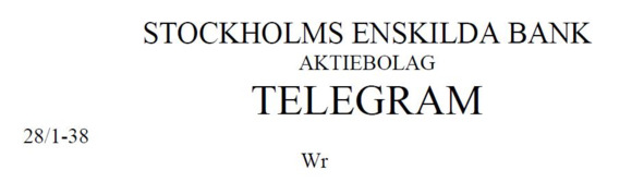 /подпись/ Ф. Аттерберг»Телеграмма Рольфа Калиссендорфа Маркусу Валленбергу-мл. 28.01.1938 (Лондон, гостиница «Савой»)
