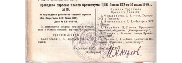 Постановление ЦИК СССР о награждении Канделаки