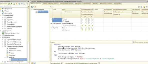 Отчёт Просмотренные фильмы в режиме Конфигуратор