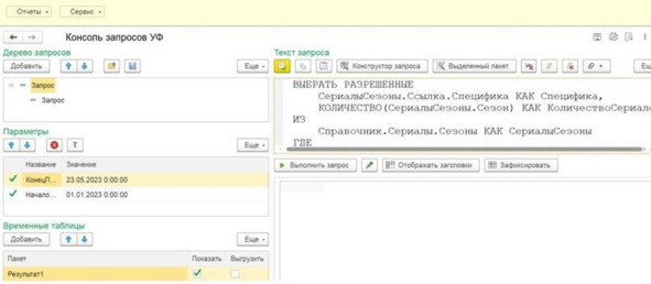 Использование консоли запросов для отладки запросов в режиме «1С: Предприятие»