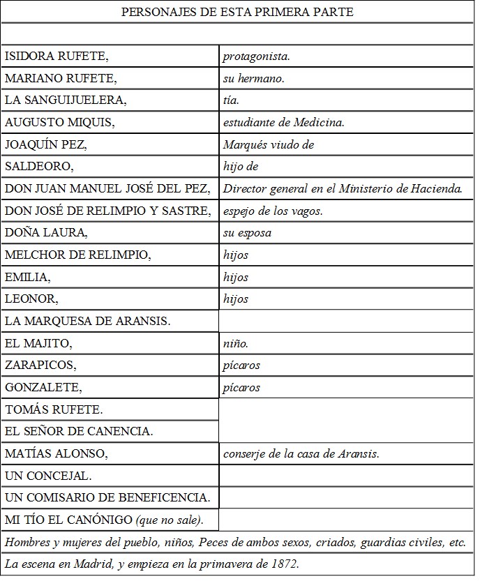 Rufete huía maquinalmente de los loqueros, como si los odiara. Los funcionarios eran para él la oposición, la minoría, la prensa; eran también el país que le vigilaba, le pedía cuentas, le preguntaba por el comercio abatido, por la industria en mantillas, por la agricultura rutinaria y pobre, por el crédito muerto. Pero ya le pondría él las peras a cuarto al señor país, representado en aquellos dos señores tiesos, que en todo querían meterse, que todo lo querían saber, como si él, el eminentísimo Rufete, estuviera en tan alta posición para dar gusto a tales espantajos. Le miraban atentos, y con sus ojos investigadores le decían: «Somos la envidia que te mancha para bruñirte y te arrastra para encumbrarte».