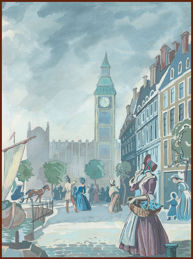 Слушает этот звон русский моряк, не наслушается. Даже глаза закрыл. А звон дальше и дальше разносится, на низкой, отлогой волне укачивает. Нет равного ему голоса на всех колокольнях старой Англии. Старик остановится, вздохнёт, девица улыбнётся, дитя стихнет, когда этот большой колокол зазвонит.