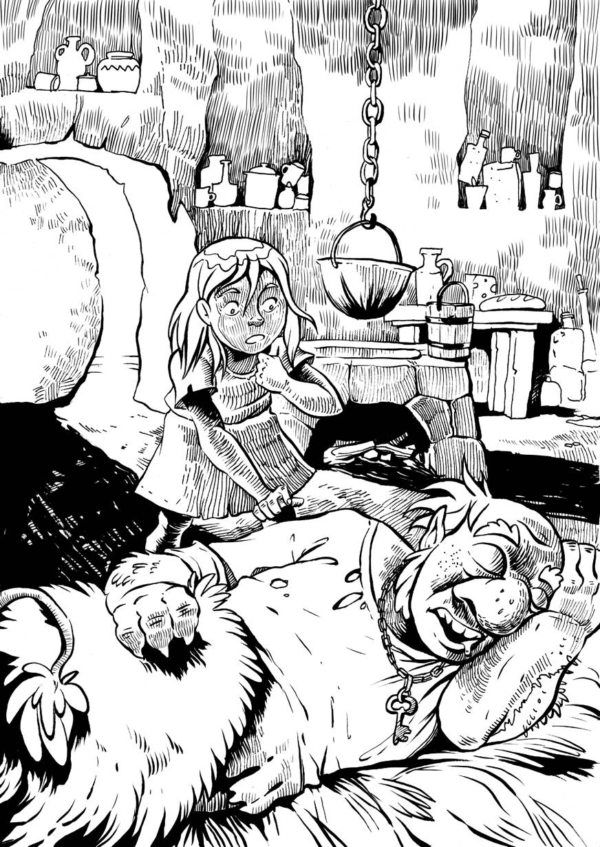 – Тогда пускай она покажет, насколько благодарна за спасение. Для начала – вычисти очаг. Потом можешь заняться стенами и полом. – Тролль зевнул и потянулся. – А Ютулу выспаться надо.