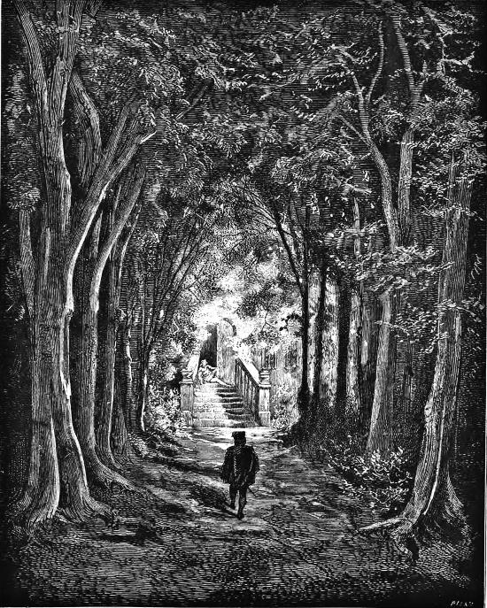 Он пошёл прямо к замку, что стоял в конце большой аллеи, на которую он попал. Но тут он был несколько изумлён, заметив, что никто из сопровождавших его людей не мог пойти вместе с ним, потому что деревья снова сплетались, как только он проходил между ними. Но это его не остановило, и он направился дальше, – ведь молодой и влюбленный принц всегда держится молодцом.