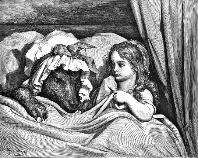 Бедная девочка не знала, что очень опасно останавливаться в лесу и слушать, что говорит волк, и сказала ему: