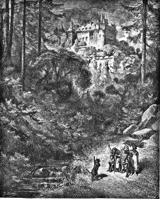 Наконец господин кот прибежал к прекрасному но мрачному замку, хозяином которого был людоед. Этот людоед был страшный богач, и все те земли, через которые проезжал король, принадлежали именно ему. Кот разузнал, кто был этот людоед и что он умел делать, и попросил, чтобы его провели к нему, так как он, по его словам, не хотел пройти мимо, не засвидетельствовав хозяину замка своего почтения.