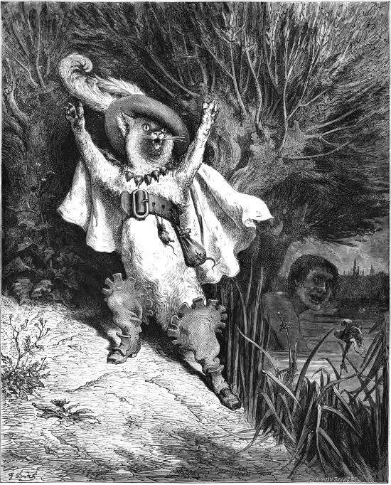 Через некоторое время кот, видя, что людоед снова обратился в человека, спустился, признавшись, что он немало-таки напугался.