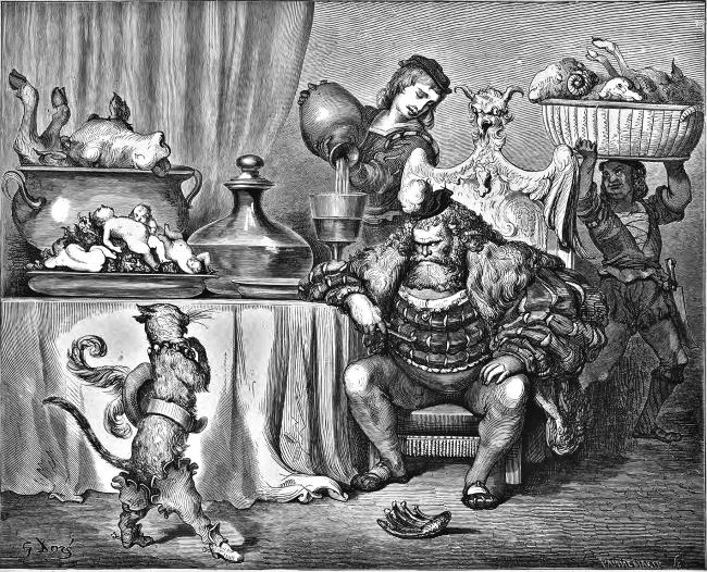 Весьма гордый своей добычей, он направился во дворец и потребовал, чтобы его допустили к королю. Кота ввели в покои его величества. Там он, отвесив низкий поклон королю, сказал: