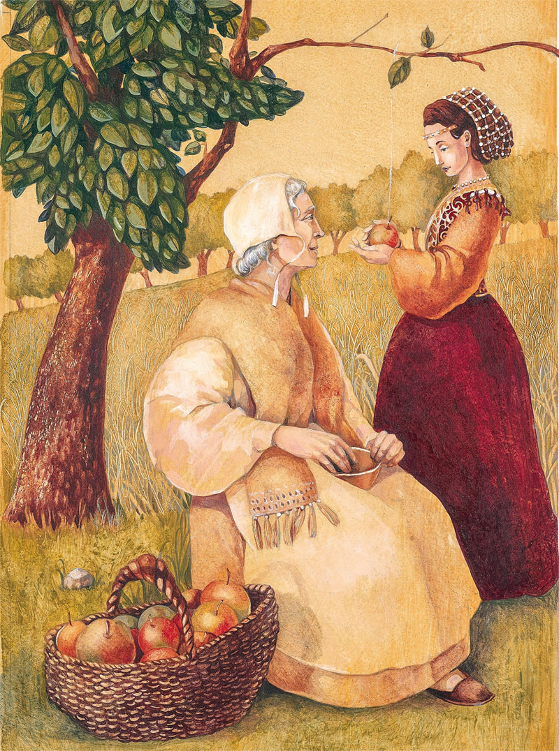 И правда, через некоторое время королева поняла, что у неё будет ребёнок, однако в положенный срок родилось у неё не дитя, а яблоко – ничего подобного никто ещё не видывал.