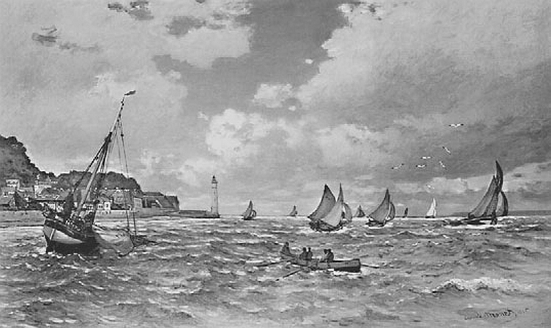 Лето развело друзей в разные стороны. Моне работал на побережье Нормандии, где с ним некоторое время прожил Базиль, который, чувствуя, что провалится на экзаменах по медицине, решил целиком посвятить себя живописи. Моне с пяти утра до восьми вечера стоял за мольбертом (он часто работал рядом с Буденом и Йонкиндом) и писал с такой страстью, что было несомненно – ему не миновать нового разрыва с семьей. Он рассчитывал добиться «больших успехов», и в самом деле, этим летом у него первого из всей группы друзей в картинах стало чувствоваться настоящее мастерство. Рядом с этим молодым человеком, взгляды которого уже четко определились, Ренуар – «в нем есть что-то от девчонки», отзывался об Огюсте Сезанн, – со своей восприимчивостью и импульсивностью, которая бросала его из стороны в сторону, неуверенный в себе, всегда готовый уступить обстоятельствам и всевозможным влияниям, производил впечатление человека слабовольного. «Я никогда не пытался управлять своей жизнью, я всегда плыл по воле волн», – говорил он позднее.