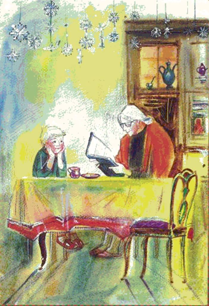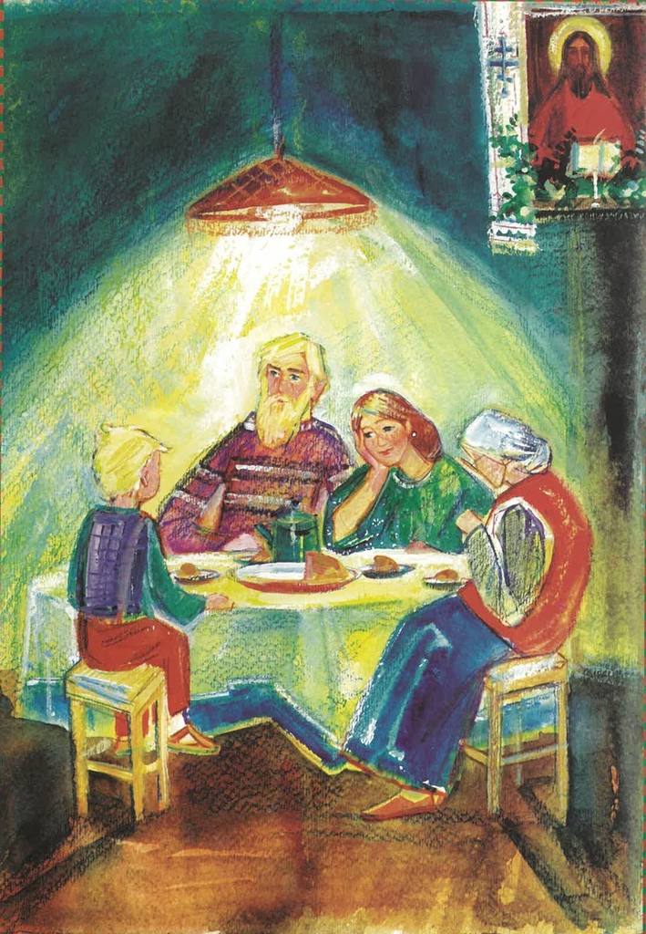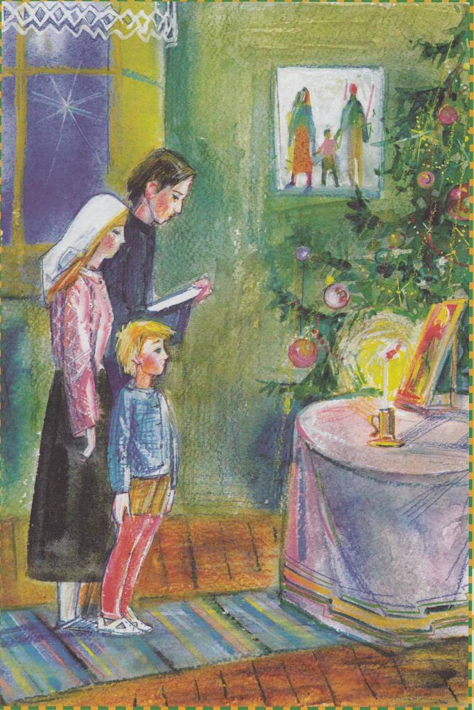 Она зажгла свечу у иконы Рождества Христова, Ванечка встал рядом с родителями и начал слушать.