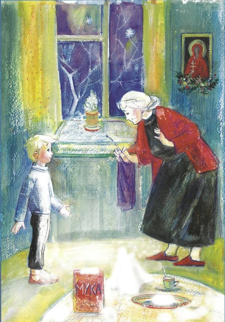 Войдя, бабушка ахнула. Кухня теперь больше походила на заснеженную полянку: всё кругом было белым-бело от муки. Мука была везде: и на плите, и на огромном дубовом кухонном столе, и на шкафу, и даже на чёлке и ресницах Максима.