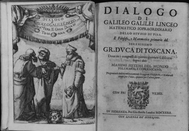Рис. 6. Фронтиспис и титульный лист первого издания книги Галилео Галилея «Диалог о двух системах мира». 1632 год.