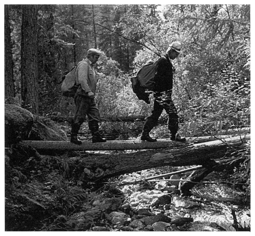 Посидев на прибрежном нагретом камне, мы пошли вдоль реки. Половина поклажи «до завтра» была брошена на косе. Шли по мягкой, промятой во мху дорожке. Когда-то Лыковы от реки уходили к своим избушкам, стараясь не оставлять следов. Теперь же от берега вверх вела заметная тропка. В прошлом году Карп Осипович пометил ее затесями. А в этот раз мы обнаружили бревнышки-ограждения. «Беспокоится старик, чтобы кто-нибудь из идущих не поскользнулся на крутизне», – сказал Ерофей, оглядывая недавнее оборудование.