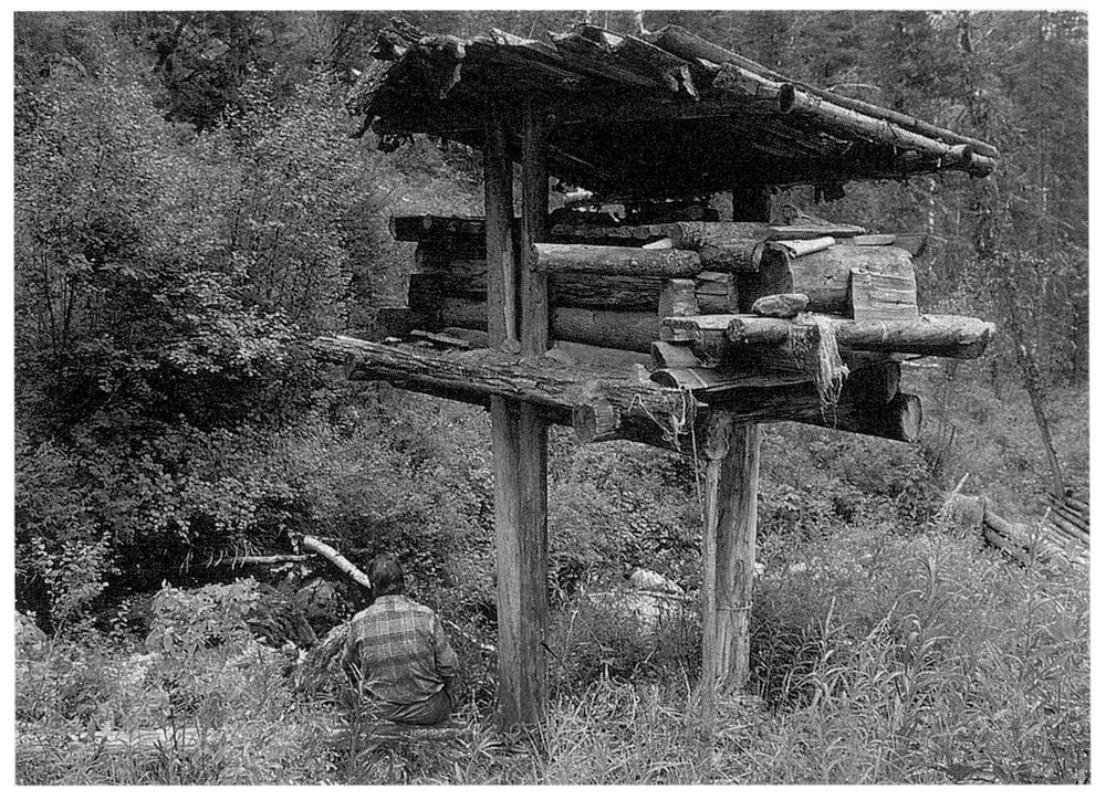 Продукты от медведей и грызунов сберегались в лабазах – небольших срубах, поднятых вверх… А внизу – склад под навесом избяной кровли