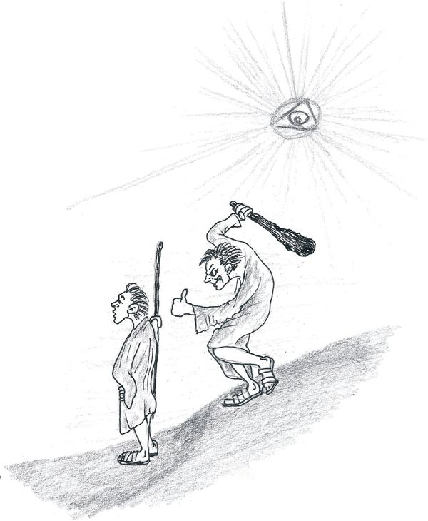 »Da sprach der Herr zu Kain: Warum ergrimmst du? Und warum senkst du deinen Blick? Ist’s nicht also? Wenn du fromm bist, so kannst du frei den Blick erheben. Bist du aber nicht fromm, so lauert die Sünde vor der Tür, und nach dir hat sie Verlangen; du aber herrsche über sie. Da sprach Kain zu seinem Bruder Abel: Lass uns aufs Feld gehen! Und es begab sich, als sie auf dem Felde waren, erhob sich Kain wider seinen Bruder Abel und schlug ihn tot. Da sprach der Herr zu Kain: Wo ist dein Bruder Abel? Er sprach: Ich weiß nicht; soll ich meines Bruders Hüter sein? Er aber sprach: Was hast du getan? Die Stimme des Blutes deines Bruders schreit zu mir von der Erde.