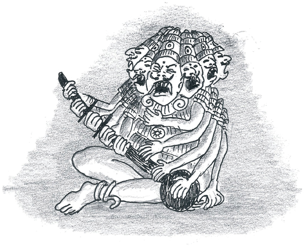 Das Böse hat viele Gesichter, heißt es. In diesem Fall sind es genau zehn. Der Anführer der Rakshasas, der dämonischen »Beschädiger« der indischen Mythologie, hat zehn Köpfe, die – damit das gleich geklärt ist – in Echsenmanier nachwachsen, wenn man sie ihm abschlägt.