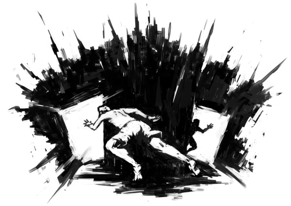 Не знаю, что меня добило, то ли в целом безумие ситуации, то ли то, что на крыше непонятно как, оказался кто-то кроме меня, то ли то, что я не взялся бы с уверенностью сказать, что это человек. Это был именно силуэт. Молнии не освещали лица, одежды, обуви, ничего – только черный силуэт. Он поглощал свет или что-то вроде того. По нему постоянно шла какая-то рябь, похожая на волны, контуры его постоянно плыли. Будто отражение поднялось из воды.