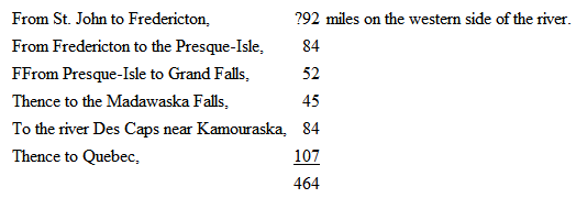 Having thus gone briefly through the different counties, I shall conclude this chapter with a statement of the distances of the principal points on the Great Road of communication from St. John to Quebec: