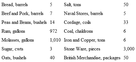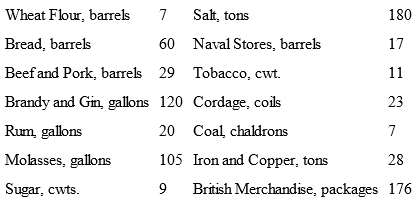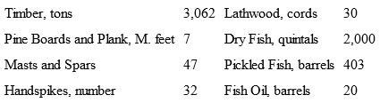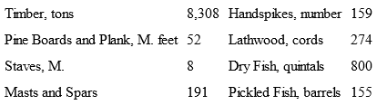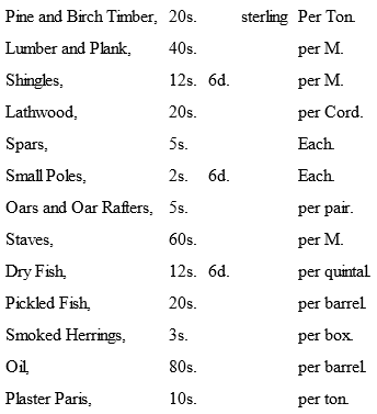 The Articles of Exports the Production of this Province and the Fisheries, are considered when shipped, worth the following values, viz.: