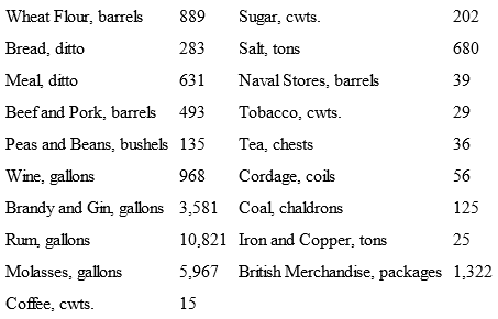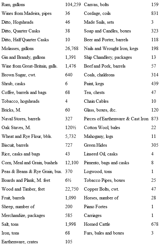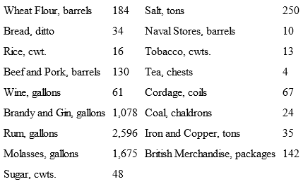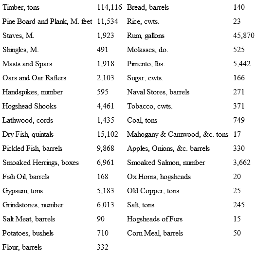 Exports to the West-IndiesBoards, shingles, fish, and small articles. The principal return for which is rum, sugar, molasses, &c.