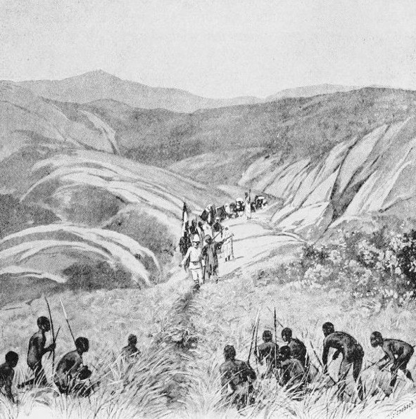 После принесения в жертву «козла мира» с людьми на высшем уровне плато, я начал спуск, который был выполнен более легко, чем мы могли ожидать. Неожиданно я увидел, что дорога была завалена кустами и ветками, а за этим барьером лежали пятьдесят или шестьдесят туземцев с копьями и натянутыми луками. Туземцы наивно полагали, что таким образом смогут получить дань за проход по их территории, но немедленно отказались от этого намерения, когда я указал на них сомалийцам, как на объект для обстрела. Эти туземцы были испорчены Томсоном, который платил дань направо и налево, о чем говорит в своей работе «Через Масаиленд». Он и его люди были здесь остановлены несколько раз и платили дань тканями, бусами и проволокой, чтобы получить разрешение на проход.