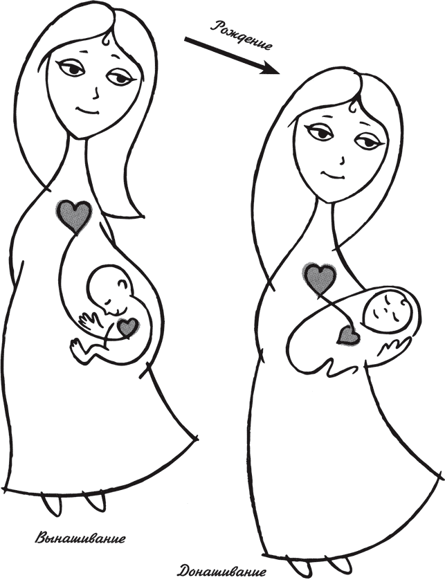 Ребенок словно медлит на пороге, и его нужно пригласить в жизнь, встретить запахами еды, теплом, лаской, заботой и покоем. Его пока не нужно ни развивать, ни воспитывать, ни «приучать» к чему бы то ни было. Его нужно просто донянчить, доносить. В буквальном смысле слова. Поэтому беременность – вынашивание – сменяется донашиванием, а роль пуповины постепенно начинает брать на себя психологическая пуповина – привязанность. В этот период ребенок почти не изменил своего положения по сравнению с беременностью, он все там же, тесно слит с матерью, только переместился по внешнюю стенку живота. И там ему надо побыть еще какое-то время.