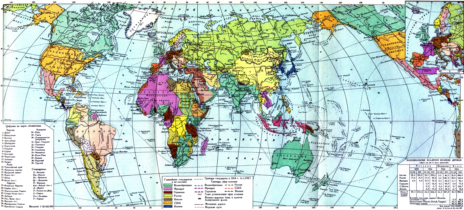 К началу 20 века весь мир уже был поделен между европейскими державами, если не на собственно колонии, то на сферы влияния, исключениями являлись два государства – США и Япония, только им удалось сохранять свой суверенитет перед европейскими странами, а в чем-то даже и превзойти их.
