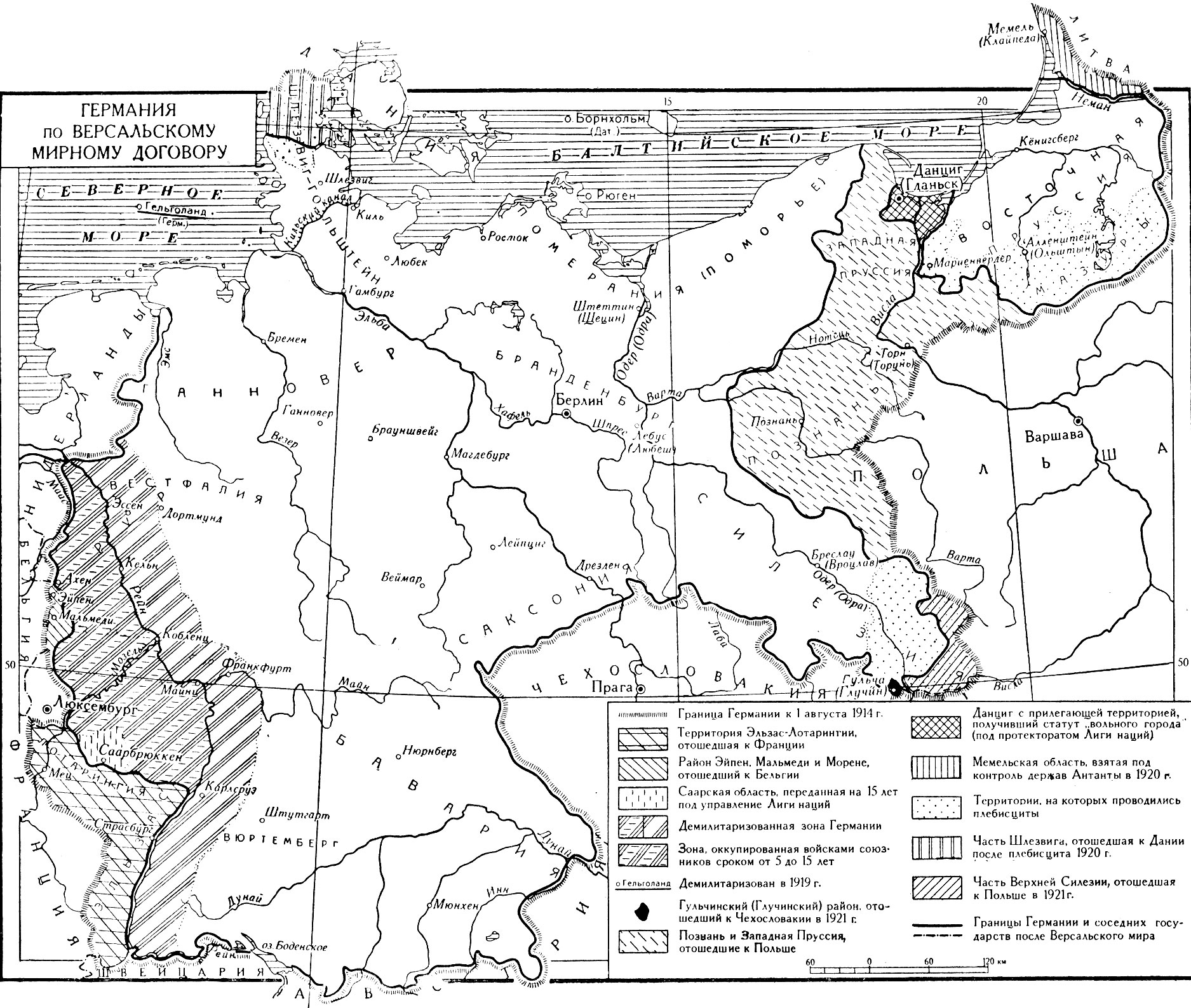 Германия хоть и была побеждена, унижена и потеряла часть территорий и армии, но при этом полной демилитаризации не произошло. Также на Германию были наложены огромные репарации, которые нереально было выплатить.