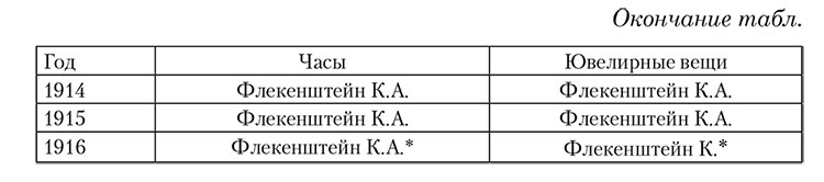 * Наличие Карла Александровича Флекенштейна, умершего 17 августа 1915 года, в адресной книге 1916 года можно объяснить тем, что сведения о владельцах торгово-промышленных предприятий обычно подавались до 1 июля предшествовавшего изданию года.