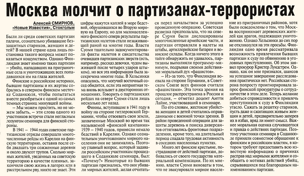 Общий вывод докладной записки Купринова звучал не без патетики и был призван снять обвинения с коренного населения: «…можно сделать вывод, что подавляющее большинство карело-финнов оккупированных врагом районов не поддалось на провокацию финско-фашистской пропаганды, остались верными своей советской Отчизне, что только продажные элементы, оторванные от народа негодяи пошли в услужение финским захватчикам»[330].