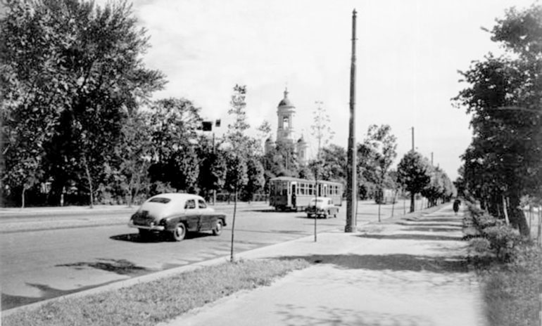 Проспект Добролюбова. Справа городские питомники. Фото 1950-х годов