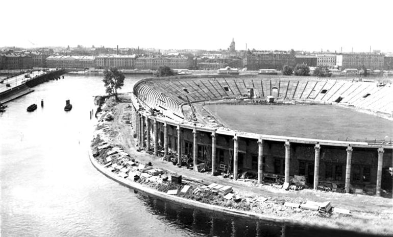 Строящийся новый стадион им. В.И. Ленина. Фото 1950-х годов