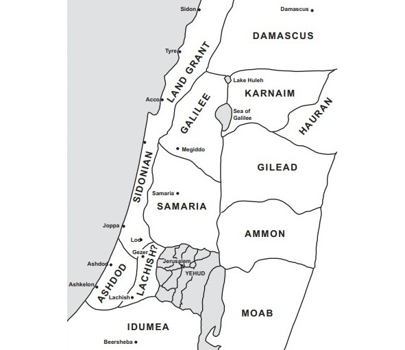Сатрапия Заречье, в свою очередь, делилась на более мелкие провинции, в число которых входила Иудея (арам. Yəhud mədinta’ – ср. yhwd mdynt’ в Ездр. 5, 8). Границы персидской Иудеи на севере проходили севернее Вефиля, на востоке – по берегам Иордана и Мёртвого моря, на юге – севернее Хеврона, а на западе доходили до Шефелы. Таким образом, она образовывала примерный прямоугольник 40 х 50 км площадью ок. 2000 кв. км. Во главе провинции Иудея стоял наместник (евр. peḥa, арам. paḥa <акк. (bēl) pīḫātim). Наряду с ним упоминаются также «начальники» (səganim), «князья» (śarim), «старейшины» (zəqanim) и «народное собрание» (qahal).
