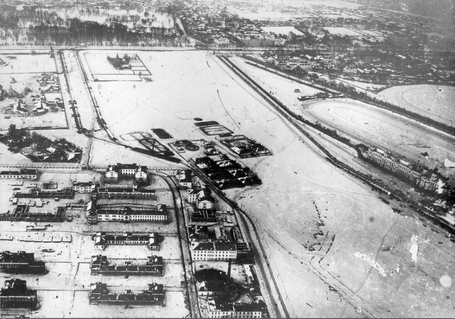 Многие из присутствовавших на открытии больницы за несколько месяцев до этого были свидетелями открытия аэродрома Московского Общества Воздухоплавания во второй половине апреля 1910 года в восточной части Ходынского поля, где совершал полеты, в том числе над строящейся больницей, известный в России пилот Сергей Исаевич Уточкин на первом аэроплане «Фарман-IV», собранном на заводе по изготовлению аэропланов велосипедной кампании «Дукс», располагавшемся там же. Возможность полетать над соседним с больницей аэродромом воспользовался губернатор Москвы В. Ф. Джунковский. «Мне хотелось испробовать впечатление от полета – вспоминал губернатор – и, сговорившись с Уточкиным, я приехал на Ходынское поле к вечеру. Биплан Уточкина был системы «Фарман», весил он 30 пудов, … наибольшая скорость около 100 км (92 версты). Пилот сидел впереди, пассажир сзади, несколько выше и на крошечном велосипедном сиденье, упора почти никакого, ноги можно было упереть в тоненькую жердочку, а руками держаться за такие же тоненькие поперечные жердочки. Казалось, что эти жердочки сейчас сломаются. Вокруг была пустота, только одни проволоки, скрепляющие разные части аэроплана между собой. Когда я с большим трудом пролез через все эти проволоки и уселся на этом крохотном сиденье, то почувствовал такую неловкость и неустойчивость, что чуть было не смалодушничал и не слез. Стыд перед Уточкиным и публикой, которой все же собралось порядочно, взял верх, и я остался. Мотор был сзади. Уточкин попросил меня снять шапку, боясь, что ее у меня сорвет ветром и она попадет в мотор. Так без шапки я и полетел. Сначала было очень неприятно, пока биплан катился по земле, такое чувство, что вот сейчас от толчка я вылечу. Но вдруг как-то неожиданно толчки прекратились, стало сразу как-то удобно сидеть, я посмотрел вниз – земля быстро уходила от нас. Адский шум мотора и страшный ветер мешали сосредоточиться, но чувство было удивительно приятное, уже не казалось, что я кувыркнусь, явилась устойчивость, уверенность. Чем дальше летели, тем больше было уверенности, я даже отнимал иногда руку от жерди, за которую держался. Мы описали круг и спустились. Спуск был неприятен, особенно когда коснулись земли. Стало даже досадно, что вернулся так скоро на землю.
